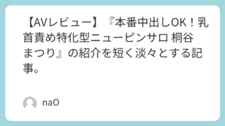 AV&IV 【AVレビュー】『本番中出しOK!乳首責め特化型ニューピンサロ 桐谷まつり』の紹介を短く淡々とする記事。