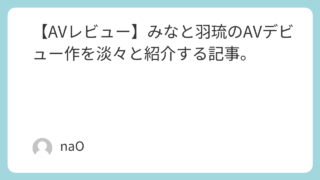 AV&IV 【AVレビュー】みなと羽琉のAVデビュー作を淡々と紹介する記事。