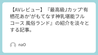 AV&IV 【AVレビュー】『最高級Jカップ‘有栖花あか’がもてなす神乳堪能フルコース 風俗ランド』の紹介を淡々とする記事。