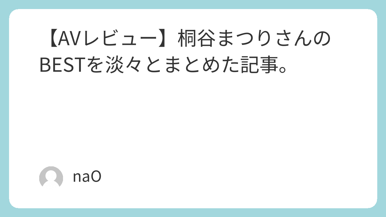 【AVレビュー】桐谷まつりさんのBESTを淡々とまとめた記事。