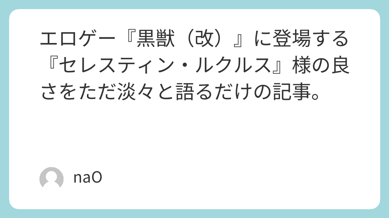 セレスティン・ルクルス様は、エロゲー『黒獣』とその改良版である『黒獣改』に登場するハイエルフのヒロインです。